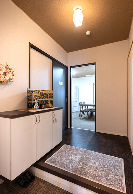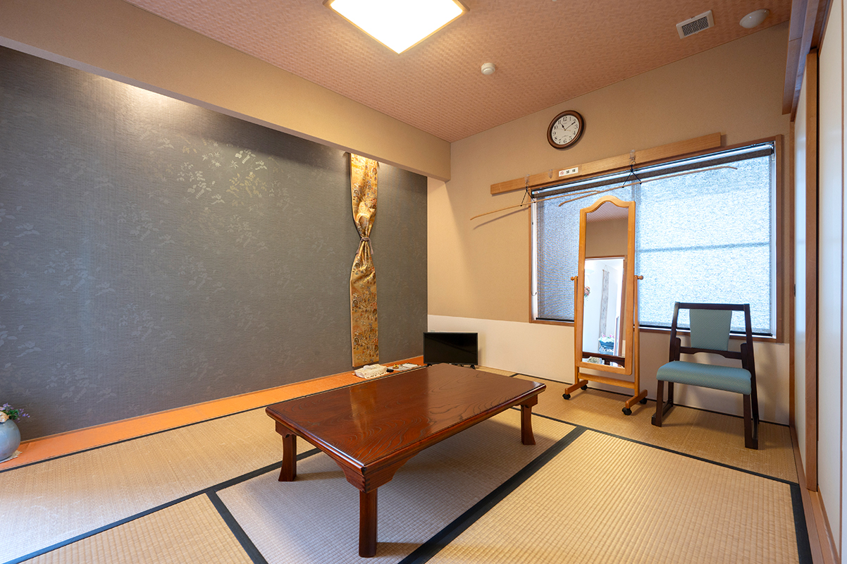 最もこだわった親族控室は、旅館のような落ち着いたお部屋で、ゆっくりとおくつろぎいただけます。洗面所や更衣室も広めに設けており、喪服の着替えにもご利用いただけます。