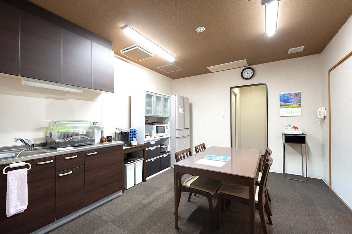 会食の際は配膳、お茶等スタッフがお世話させていただきますので、ご家族もゆっくりお召し上がりいただけます。
