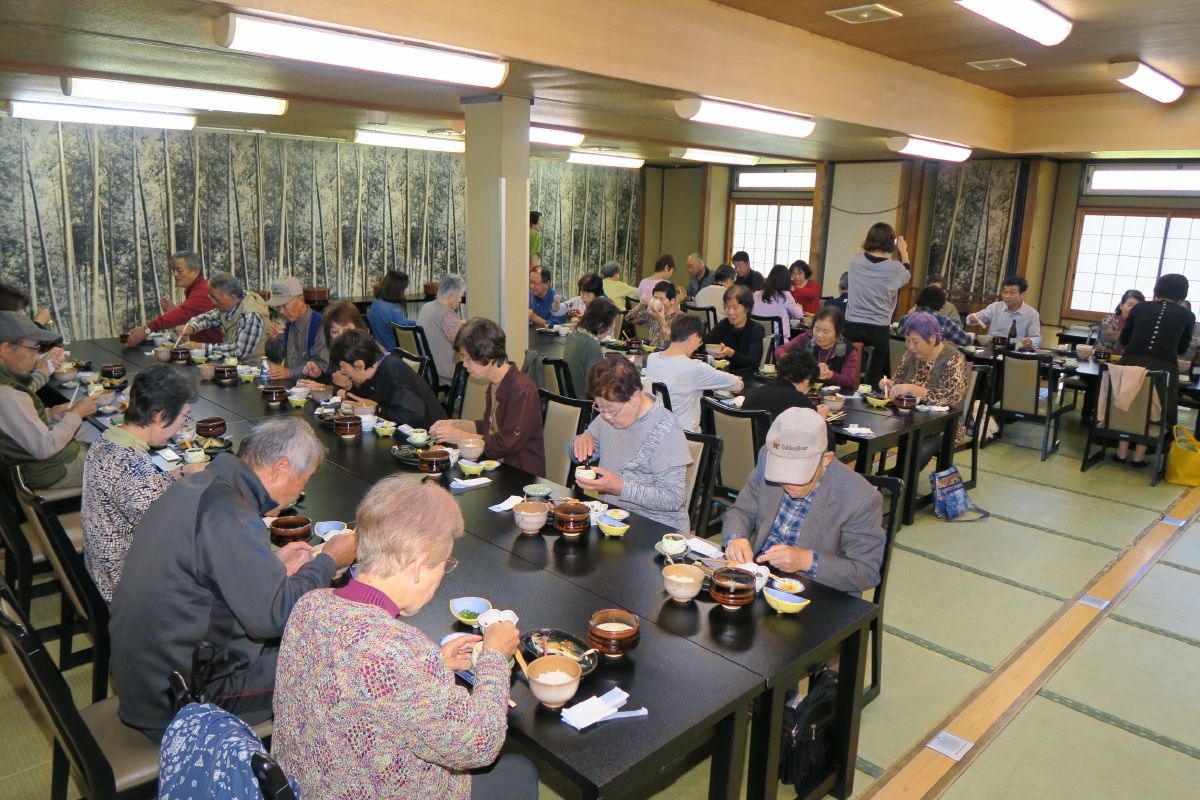 クルージングの後は、すぐ近くにある「湖楽園」で昼食をいただきました。​自然薯とろろめしや、香ばしく焼き上げられた大きなアユの塩焼きなど、地元の旬の食材をふんだんに使った料理に、参加者の皆様からは「美味しかった」「満足です」といったお声をいただきました。​